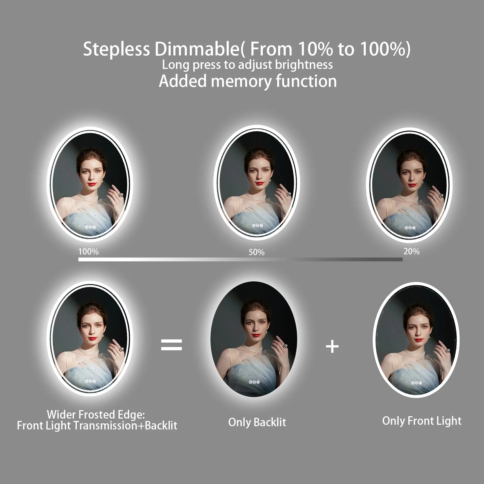 28" / 32" Oval LED Bathroom Mirror – Dimmable Backlit Anti-Fog Lighted Vanity Mirror with Touch Sensor