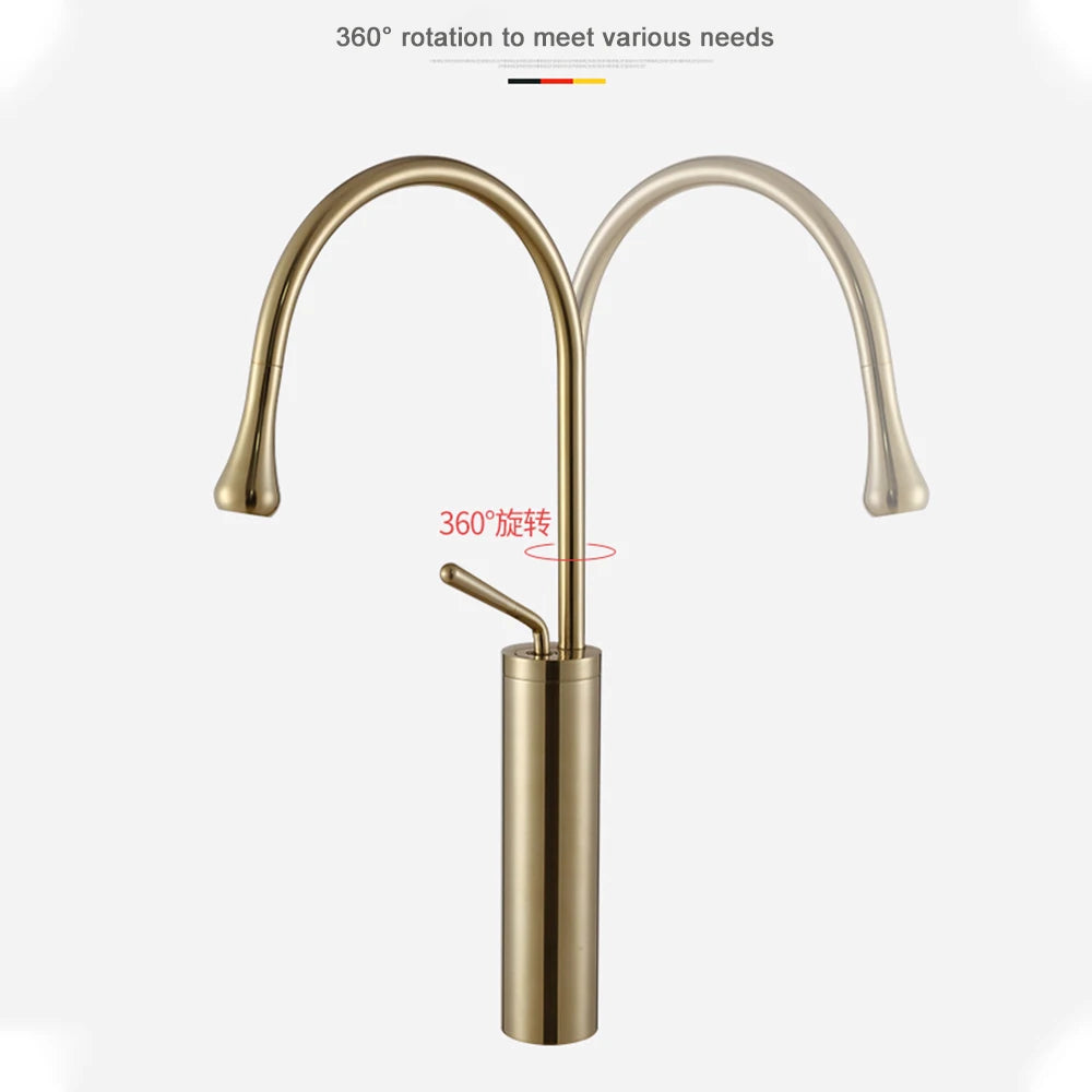 Brushed Gold Basin Faucet Black Faucet Deck Mounted Basin Sink Tap Hot & Cold Mixer Brass Tap for Bathroom