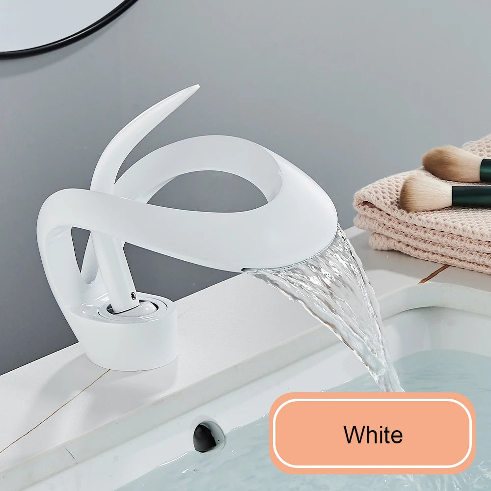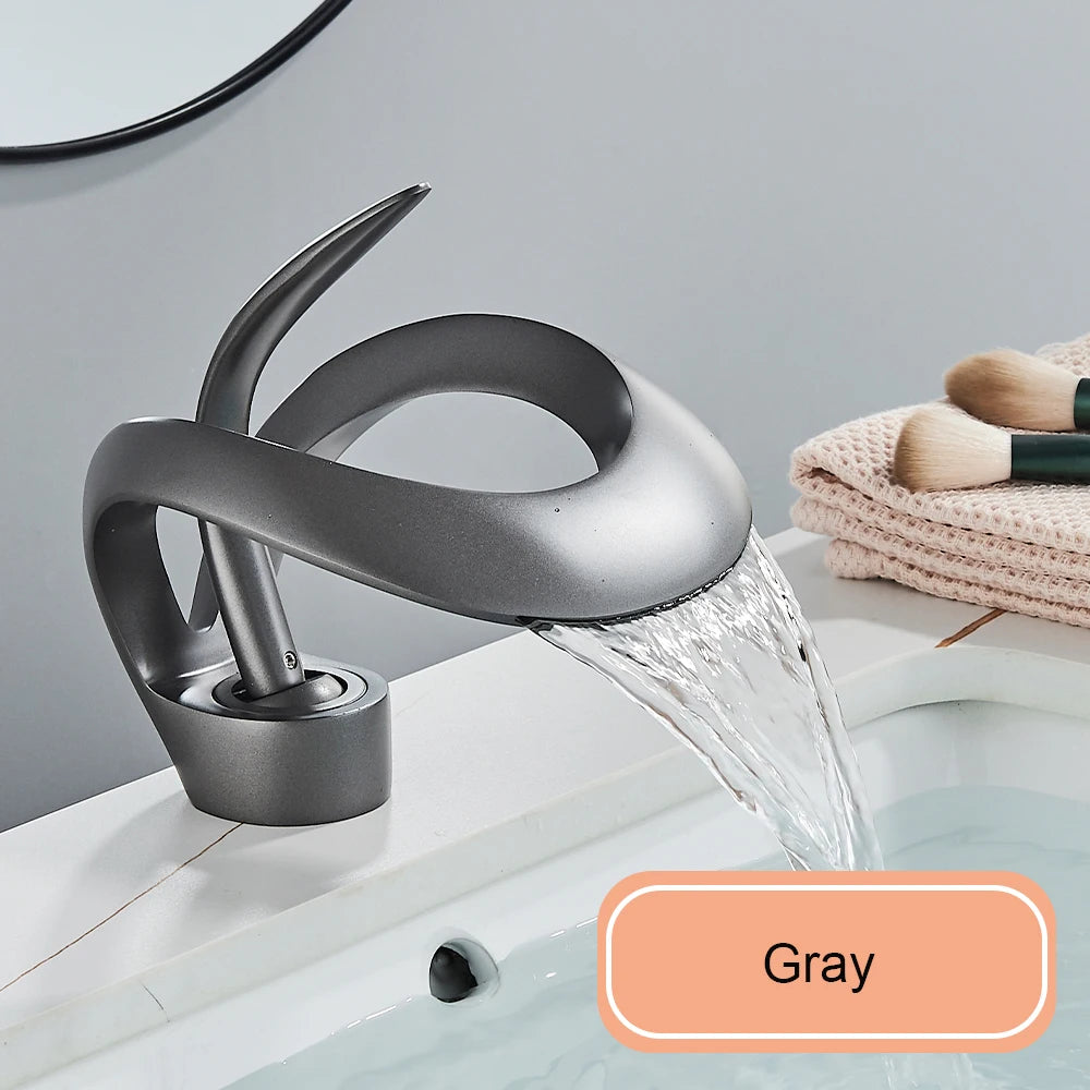 Gold Bathroom Basin Faucet Brass Waterfall Single Handle Crane Hot Cold Water Mixer Tap New Style