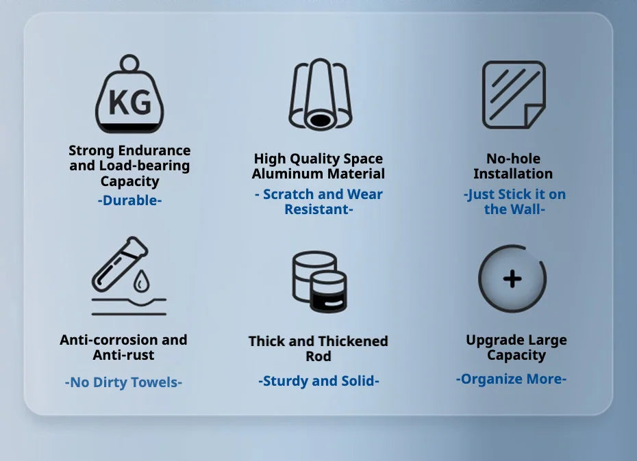 Feature: Double bar with additional hook, strong adhesive mount, corrosion-resistant