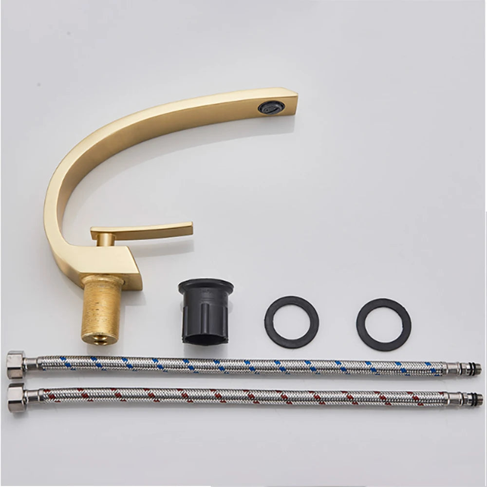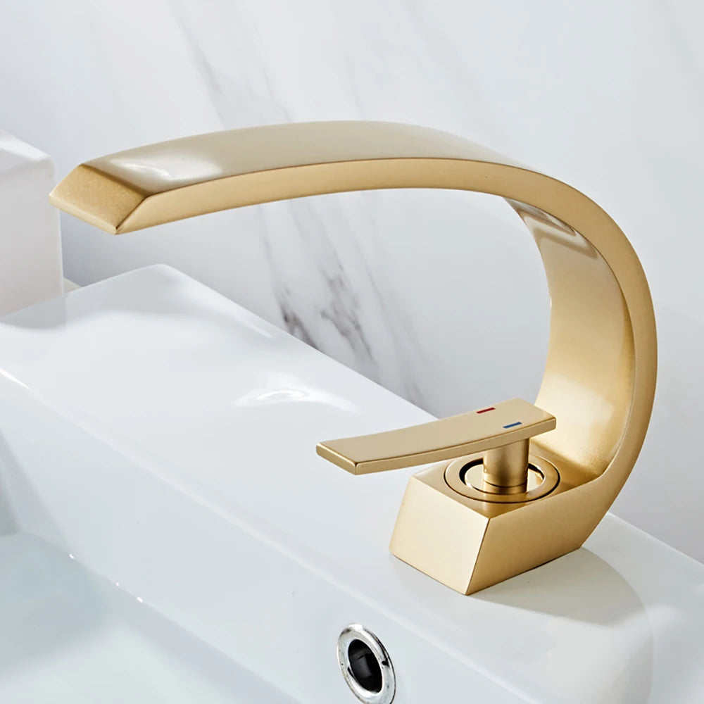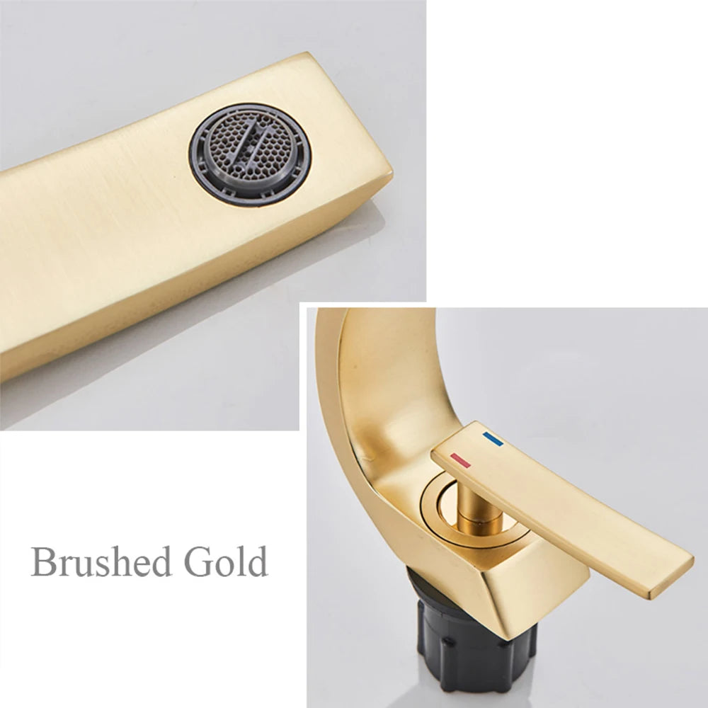 Polished Golden Bathroom Faucet Single Handle Hot Cold Mixier Tap Vanity Sink Faucet Deck Mount Crane